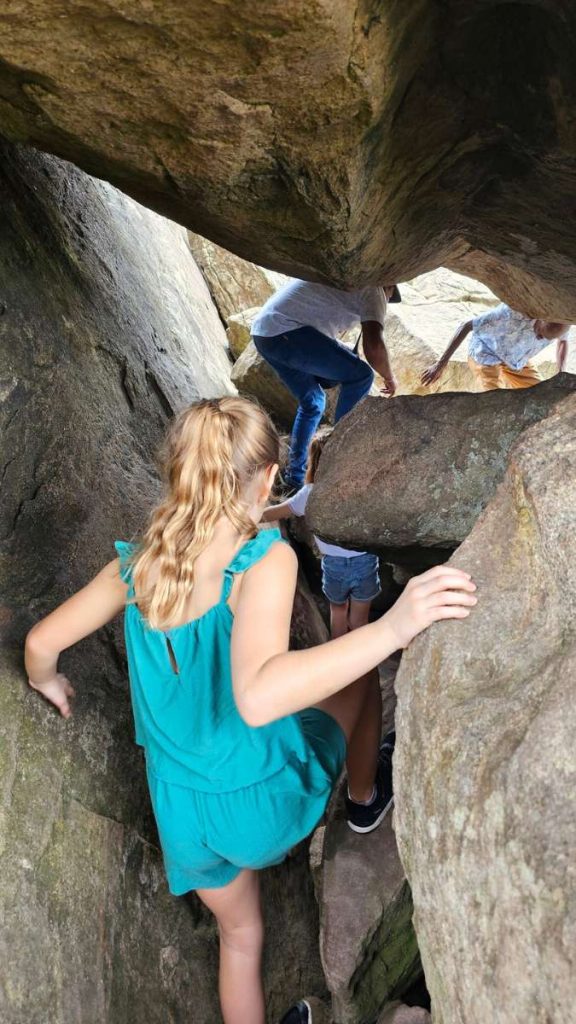 La dernière partie de votre ascension est plus difficilement accessible. En effet, il n’y a plus de chemin et il faudra faire de l’escalade sur des rochers. Et même ramper sous le dernier.