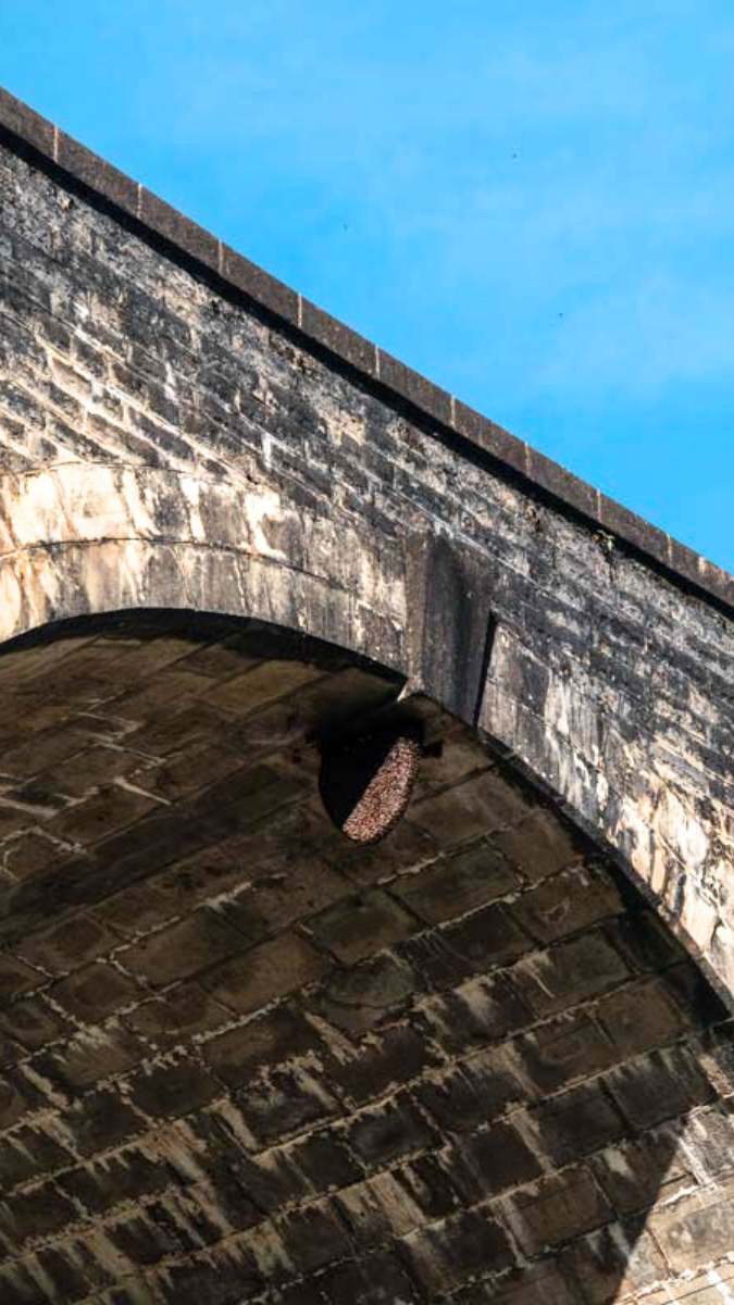 Le Pont des Neuf Arches n’est pas le seul qui abrite des colonies de guêpes et de frelons. Il y en a sur les parois du Rocher du Lion et d’autres sont accrochées au menton de la statue du Bouddha Doré au pied des Caves de Dambulla.
