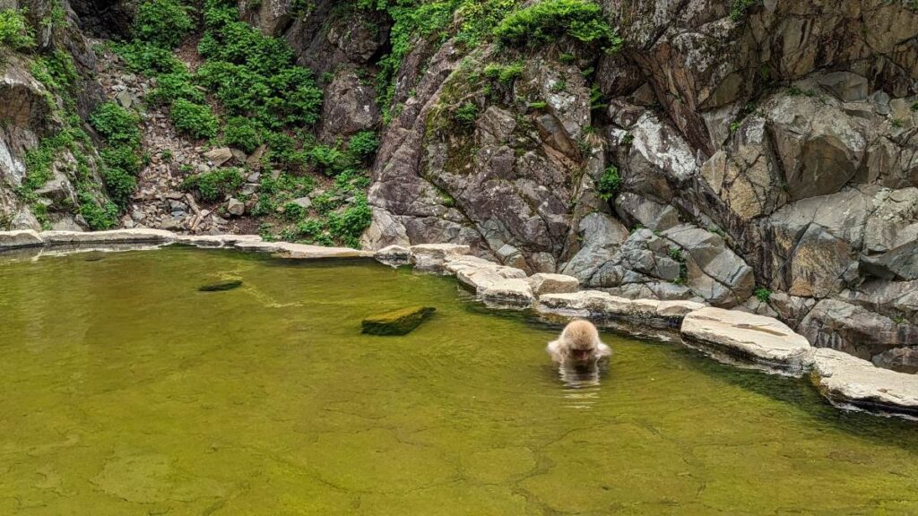 Mais je vous rassure, vous pouvez venir les voir à n’importe quelle saison. Nous y étions au printemps et même si la neige n’était pas présente, les singes eux, étaient bel et bien là. Ils n’ont pas hésité à faire trempette !